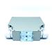 Optický rozvaděč/box pro umístnění na DIN lištu šedé barvy pro max. 8 SC simplex spojek, kovový se šroubovatelným víkem pro zakončení max. 12 optických vláken. Box má 4 kabelové vstupy a dodává se se 2 kabelovými průchodkami PG11 a dvěma záslepkami. Neosazen spojkami.