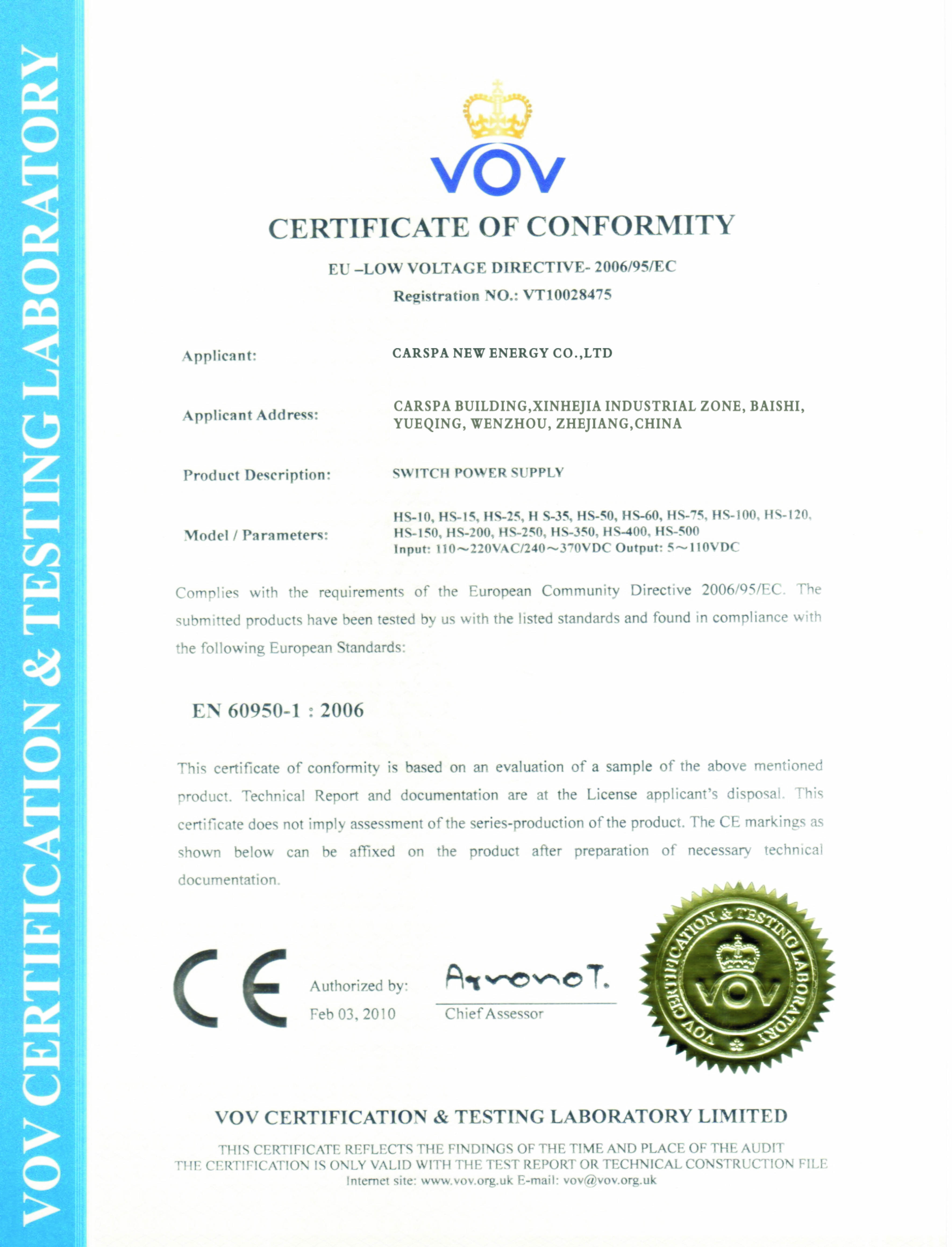 Carspa HS-500/24, Průmyslový spínaný zdroj 24V/20A, 500W