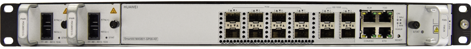 Huawei MA5801 GP08 H3 OLT, DC, official CZ distribution, including 8x C+ SFP - components