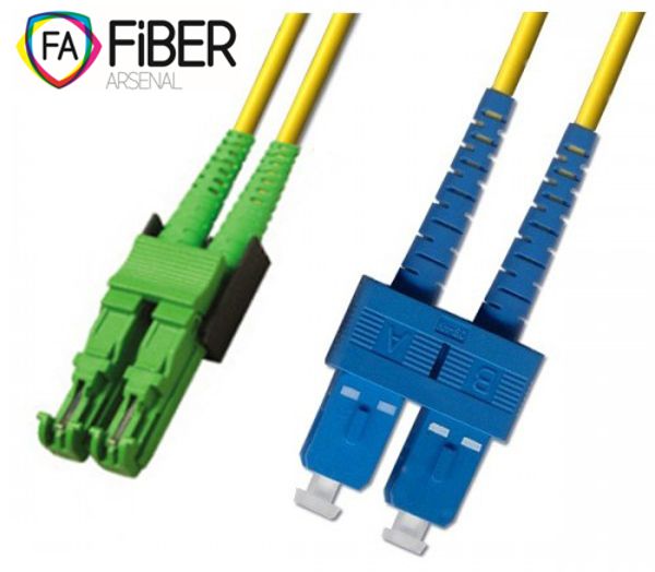 Optický patchcord, 9/125,E2000/APC-SC/PC, SM, duplex, 1m